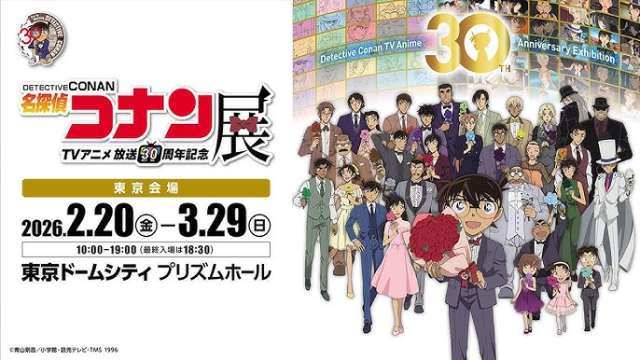 テレビアニメ放送開始から30周年を迎える『名探偵コナン』。その節目を記念した企画展『放送30周年記念 TVアニメ「名探偵コナン」展』が、2026年2月20日より東京ドームシティ プリズムホールにて開催される。